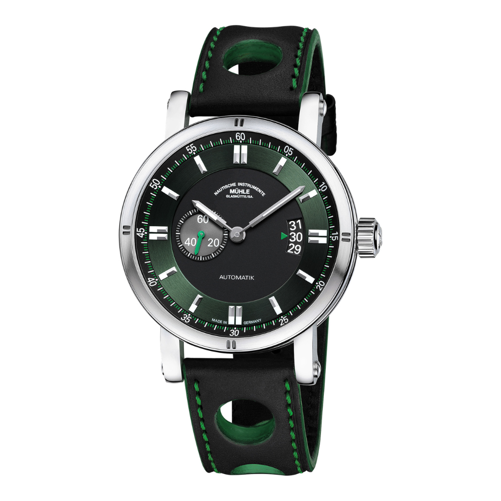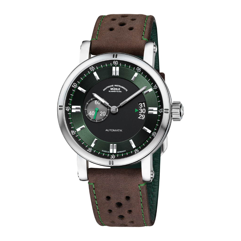 Fast so alt wie diese Traditionsmarken ist die Verbindung von Mühle-Glashütte mit dem Automobilbau. Denn schon zu Beginn der 1920er Jahre wurden bei R. Mühle & Sohn Tachometer, Drehzahlmesser und Autouhren gefertigt. In der Tradition dieser Instrumente steht die Teutonia Sport II. Mit ihrer dynamischen Farbgebung fügt sie diesen jedoch eine gehörige Portion Sportlichkeit hinzu – ohne die bewährten nautischen Tugenden von Mühle-Glashütte zu vernachlässigen: beste Ablesbarkeit, Robustheit und absolute Präzision.
